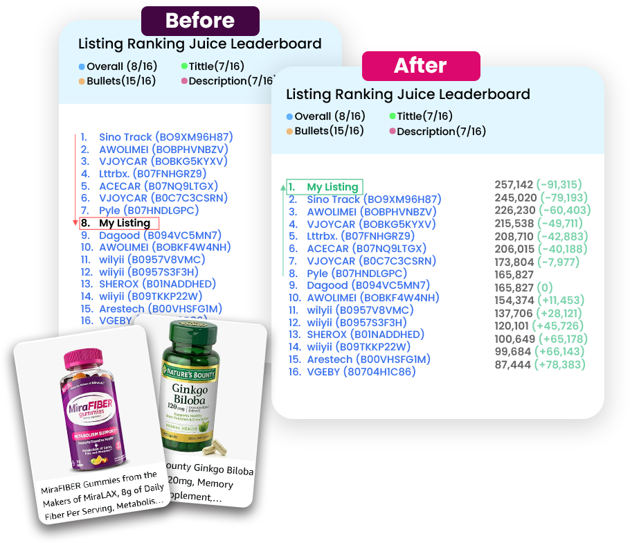 An enhanced Amazon listing boosts discoverability and sales 4x, optimized with powerful copy, keyword integration, and backend enhancements.